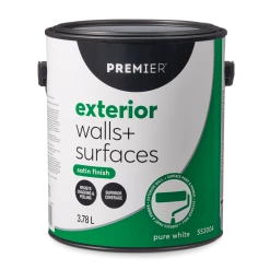 - Premier Exterior Walls & Surfaces Paint offers great coverage and durability